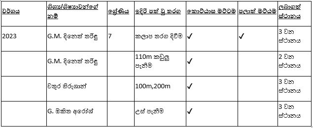 2023/2024 වර්ශයේදී 14 න් පහල සිසුන් ලබා ගත් ක්රීඩා ජයග්රහණ